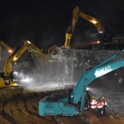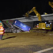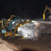 Abbruch eine Straßenbrücke zwecks Erneuerung.