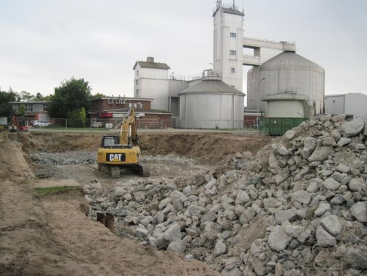 Abbruch eines alten Belebungsbeckens in der Verdener Kläranlage.